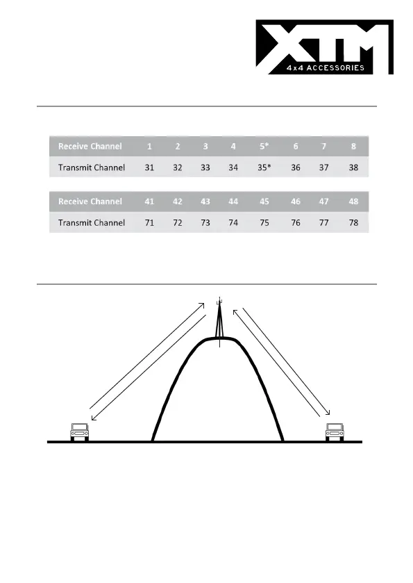 The following table displays the receive and transmit channels when using repeater stations: