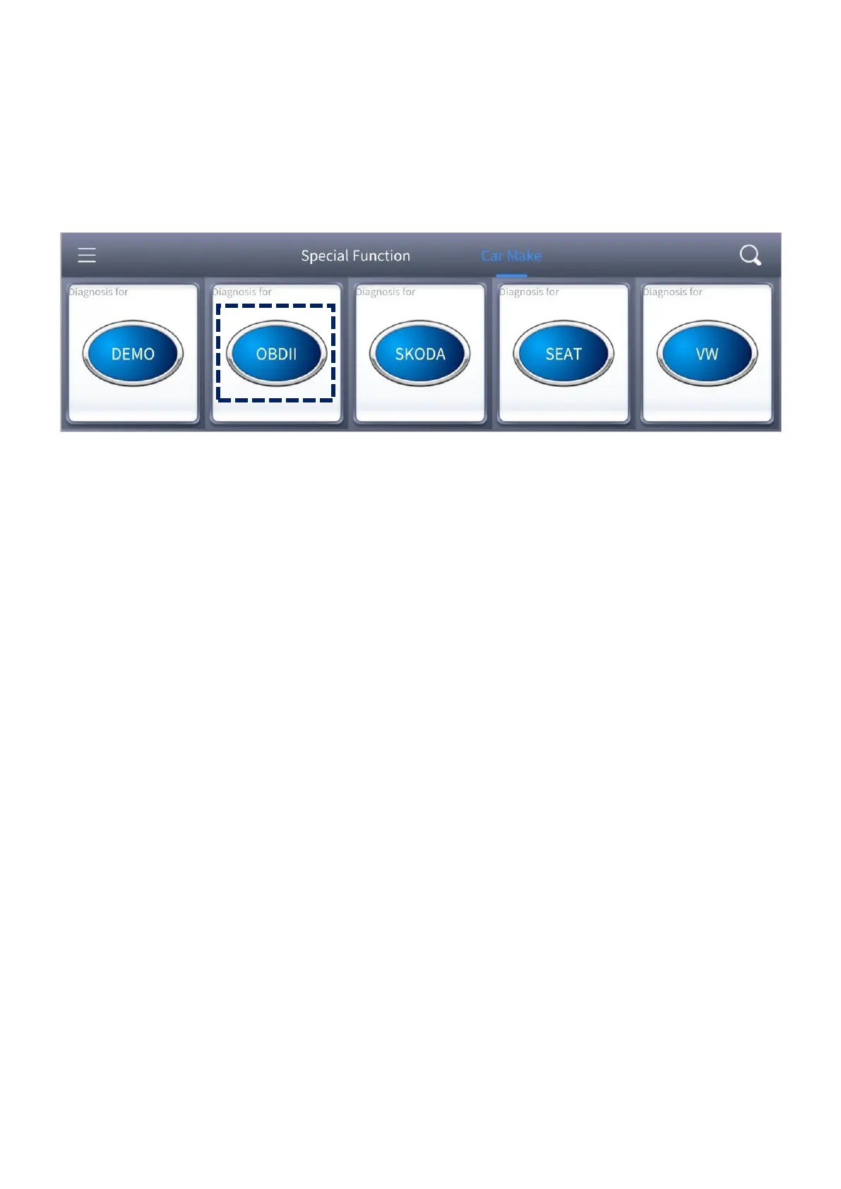 You can perform the OBDII diagnosis by clicking the OBDII button after entering the Car