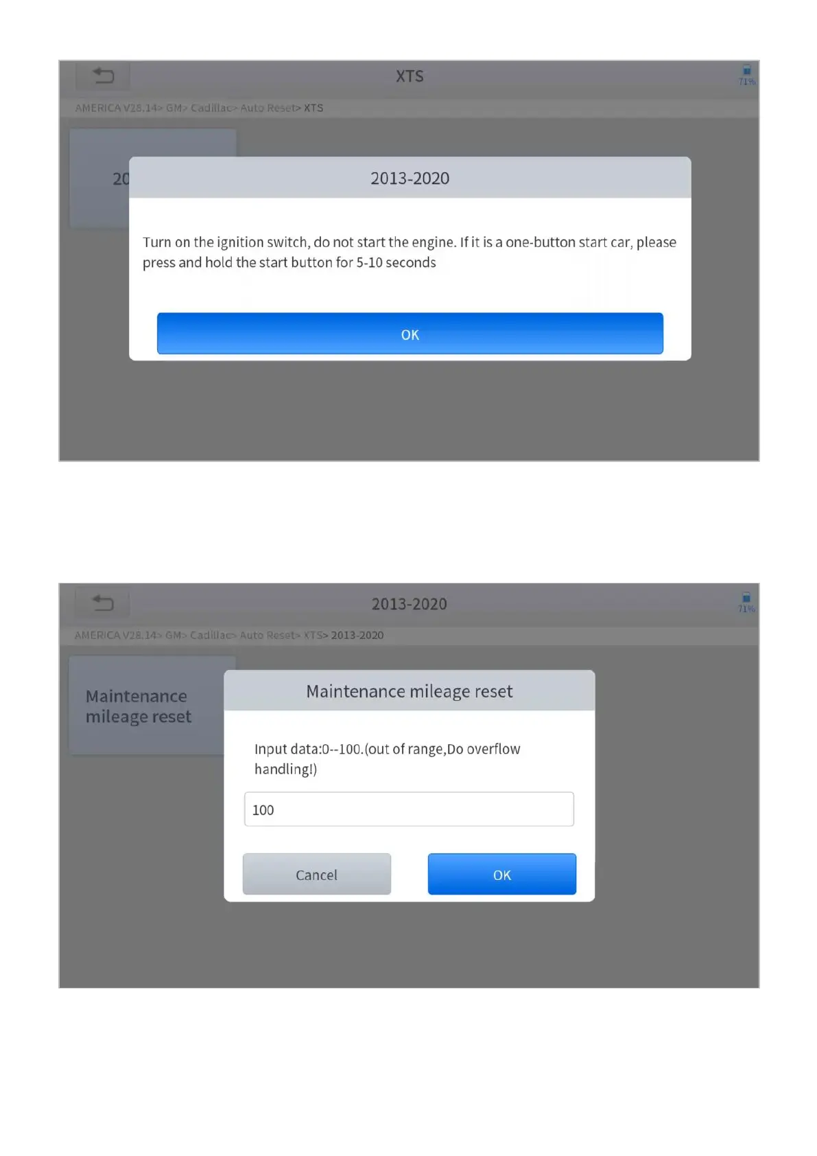 Figure 5-3 Sample of oil reset function (screen 2)