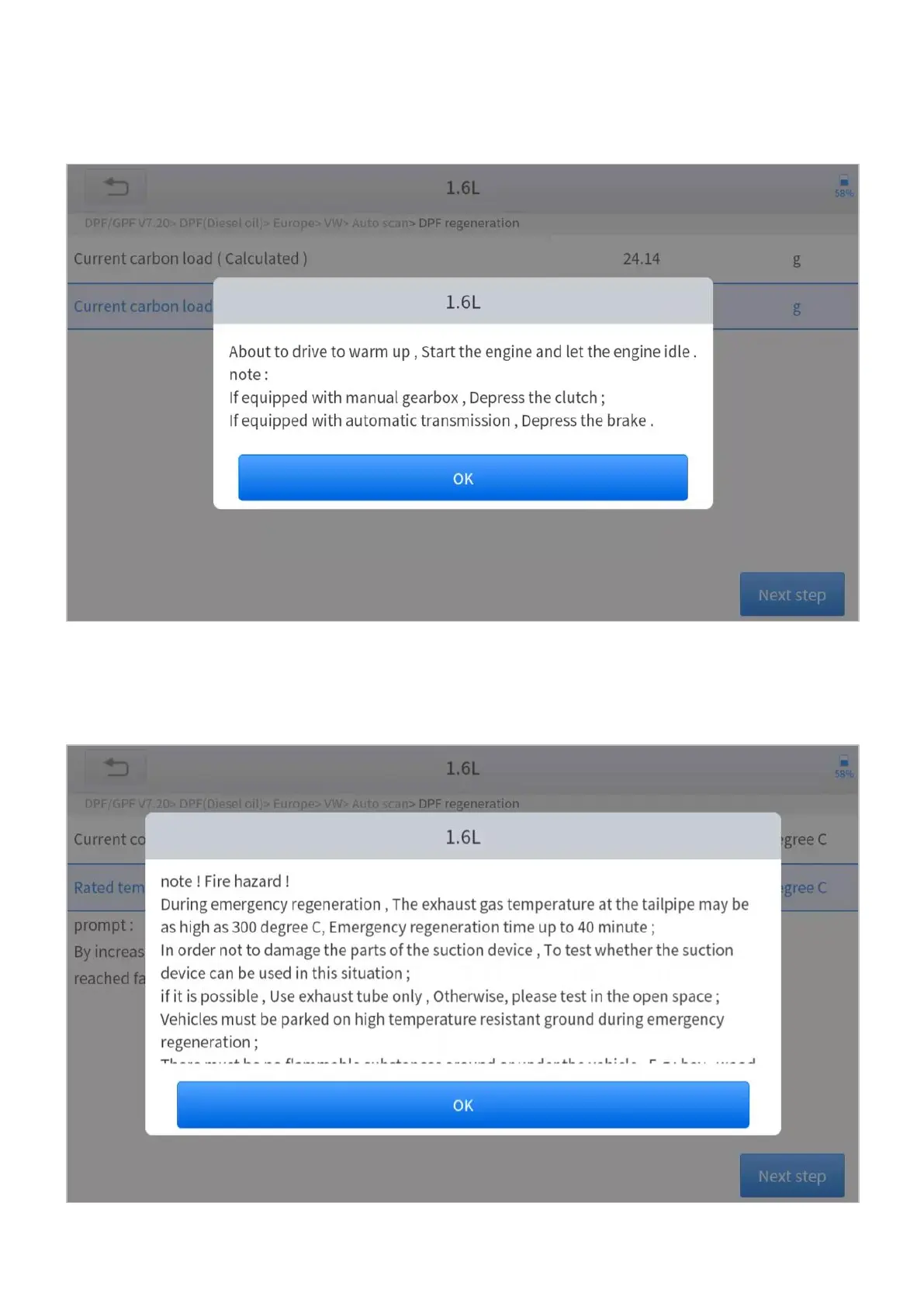 6. Choose drive to warm up and follow the instructions listed below. And press OK after