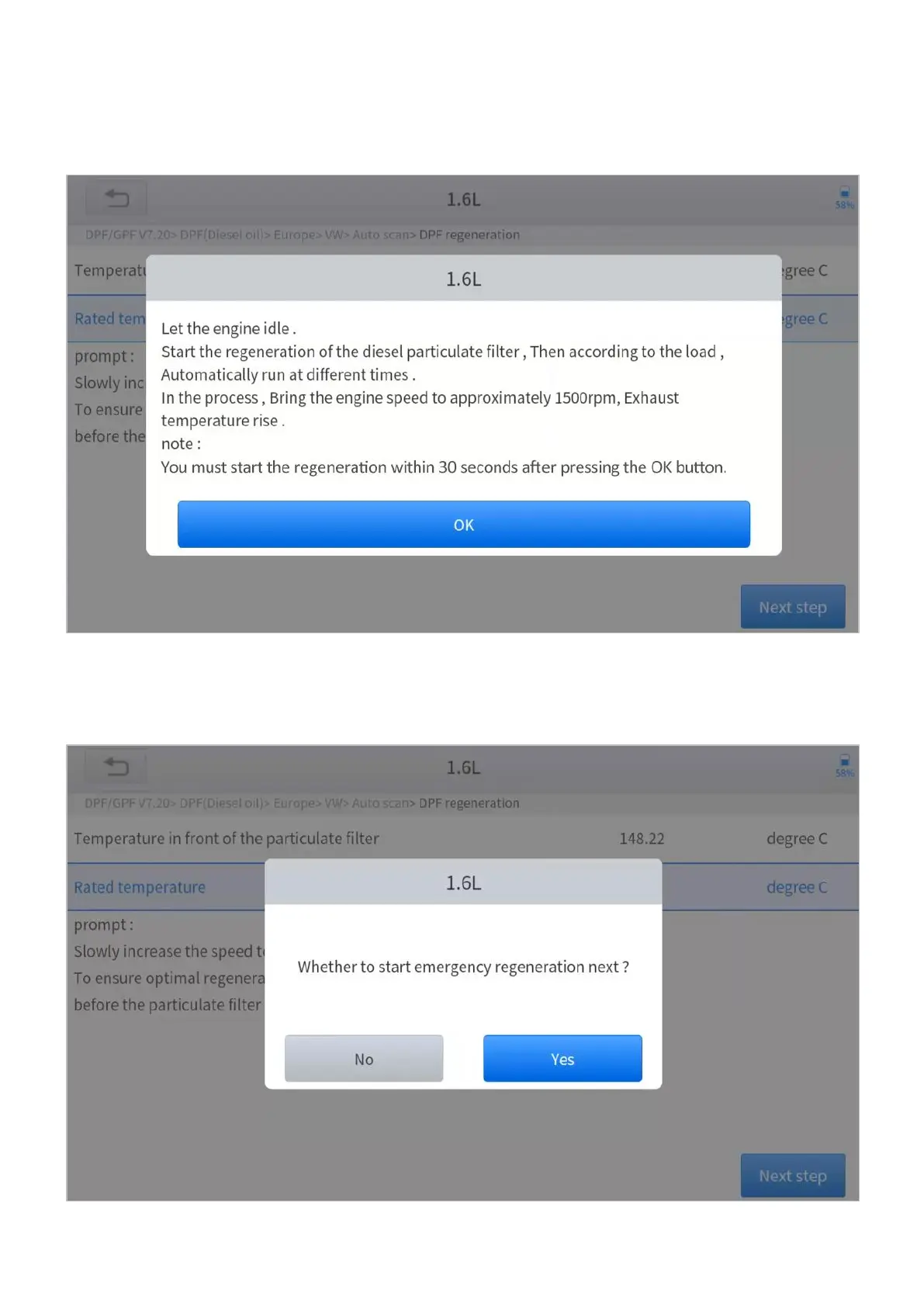9. Press the OK button to start the regeneration.
