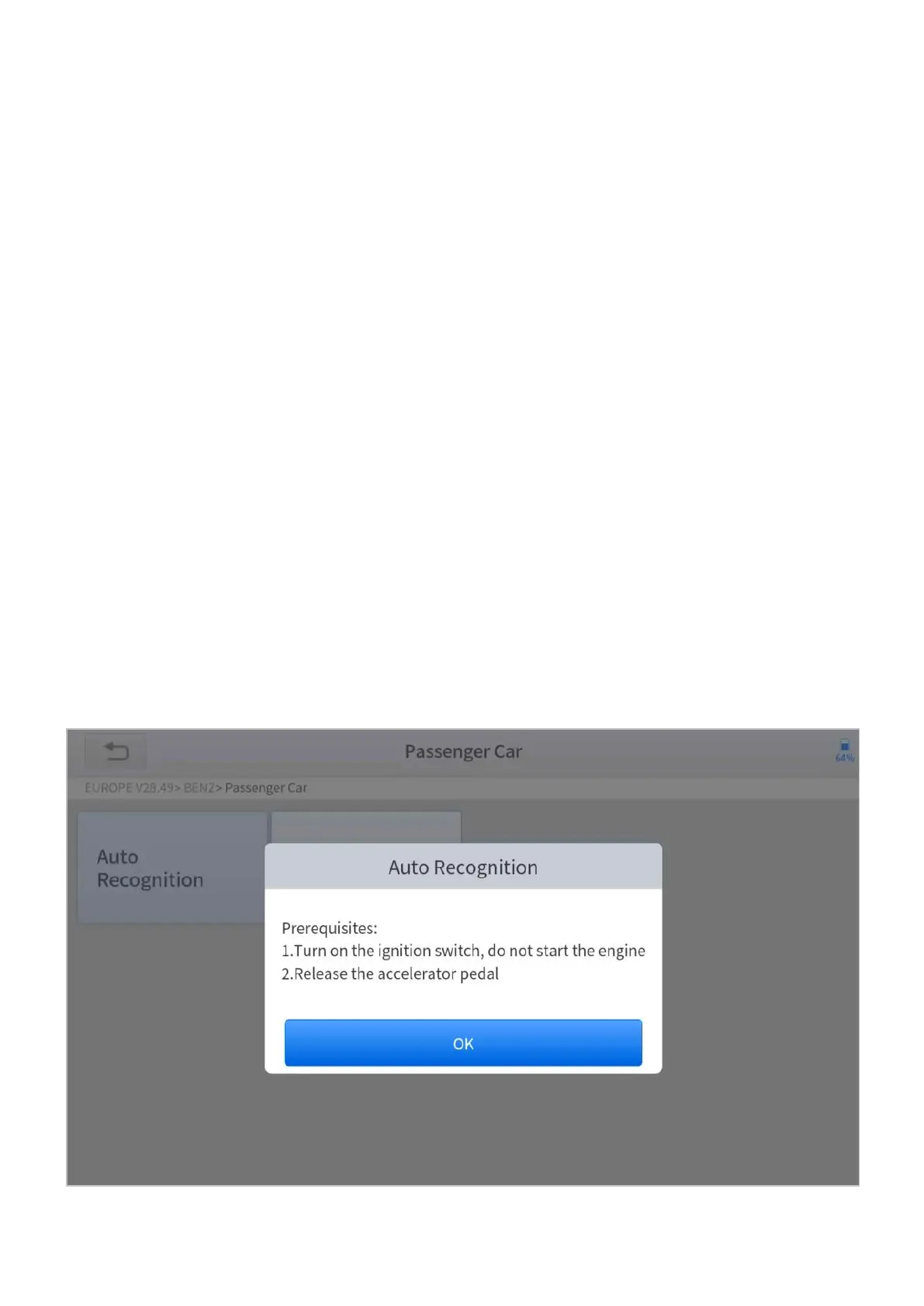 2. Enter the Auto Recognition menu and turn on the ignition switch.