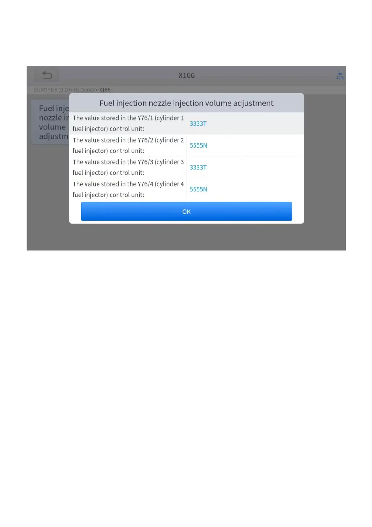 9. Re-enter the Fuel injection nozzle injection volume adjustment menu to check