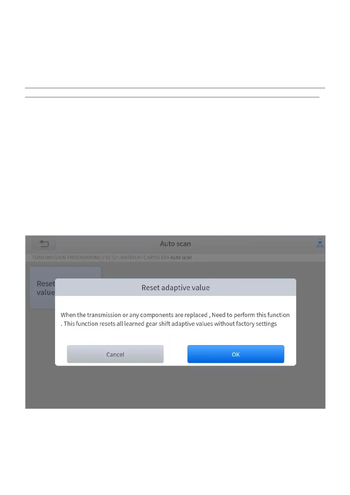 2. Enter the Reset adaptive value menu.