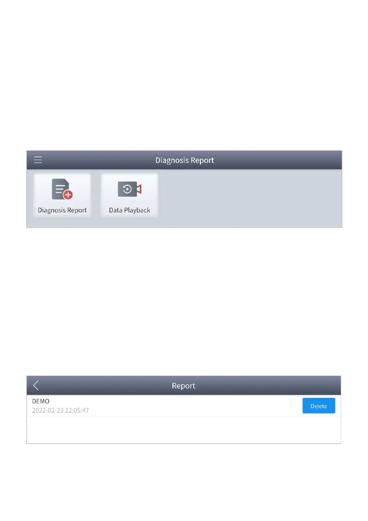 Diagnosis Reports are used for viewing and printing the saved files, such as Live Data,