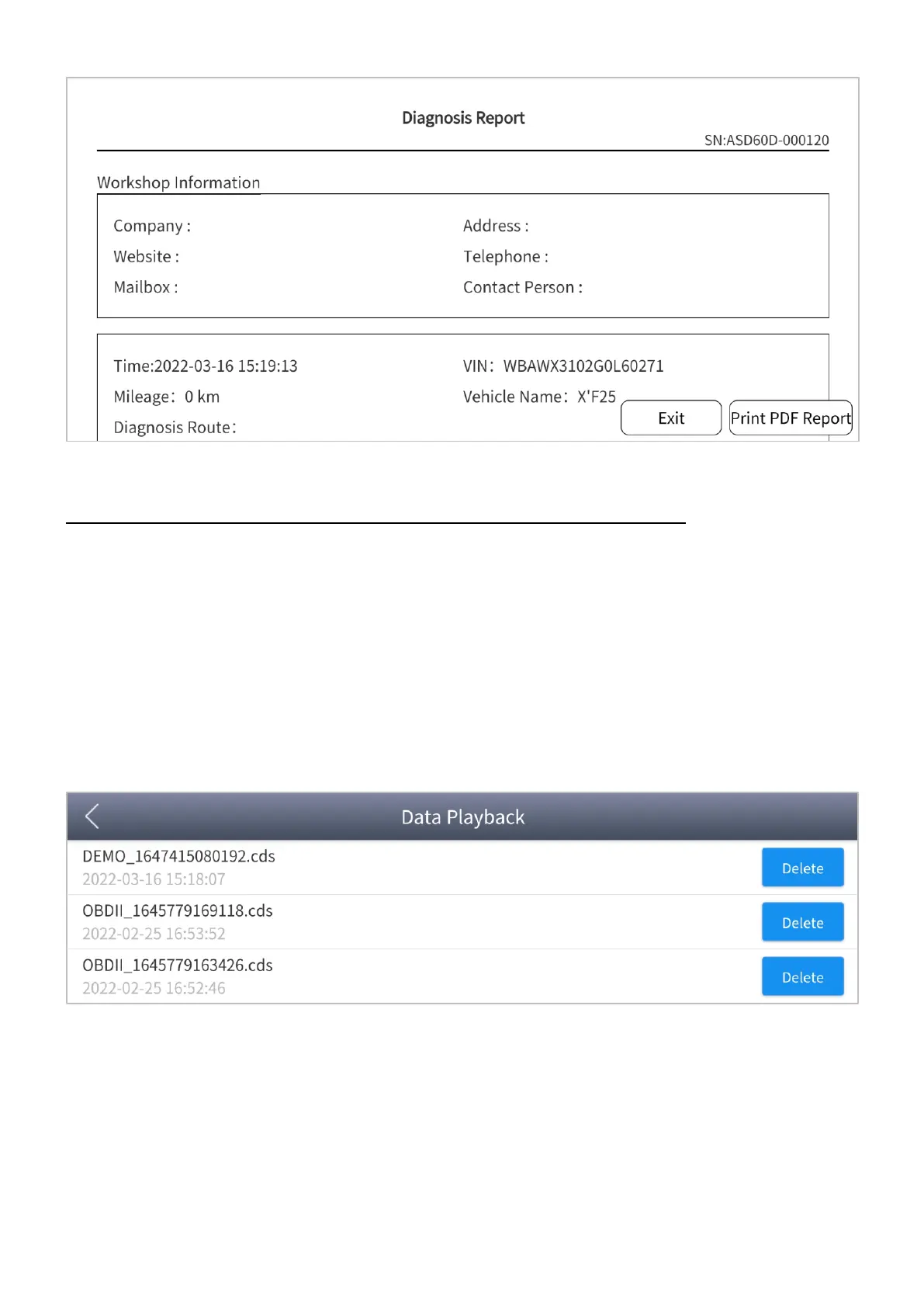 This function allows you to replay the Live Data recorded during the diagnosis process.
