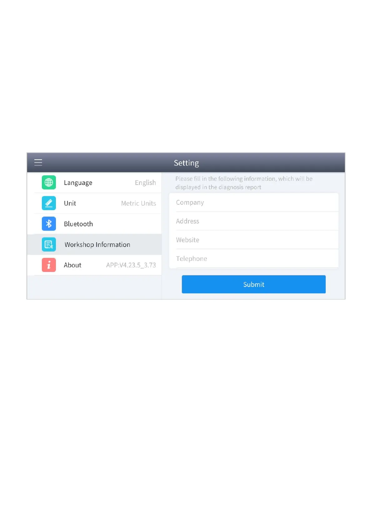 the diagnosis report, including your company name, address, website, telephone, mailbox,