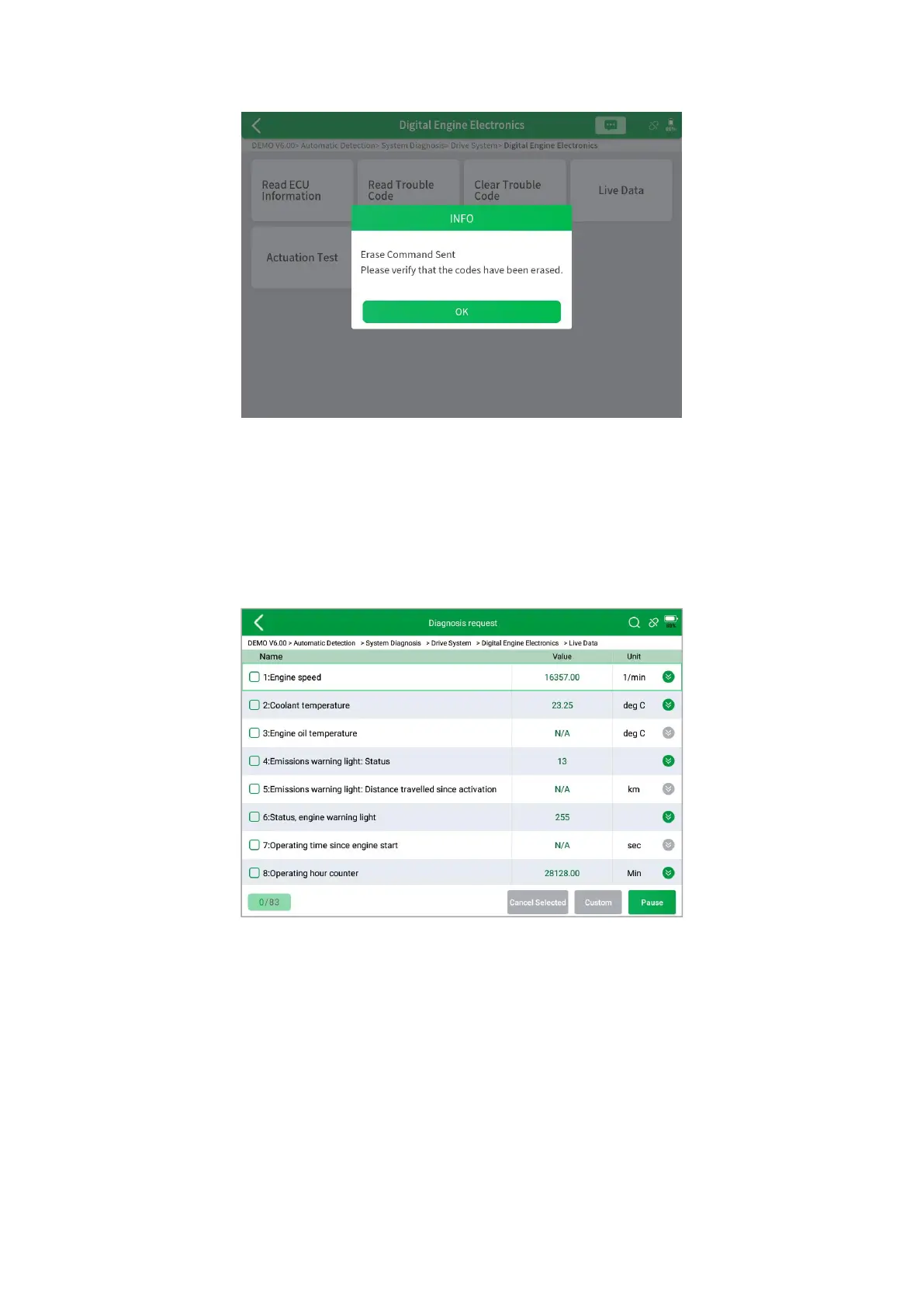 !Note: The speed may vary depending on the speed of data sent from the vehicle and the number of data parameters