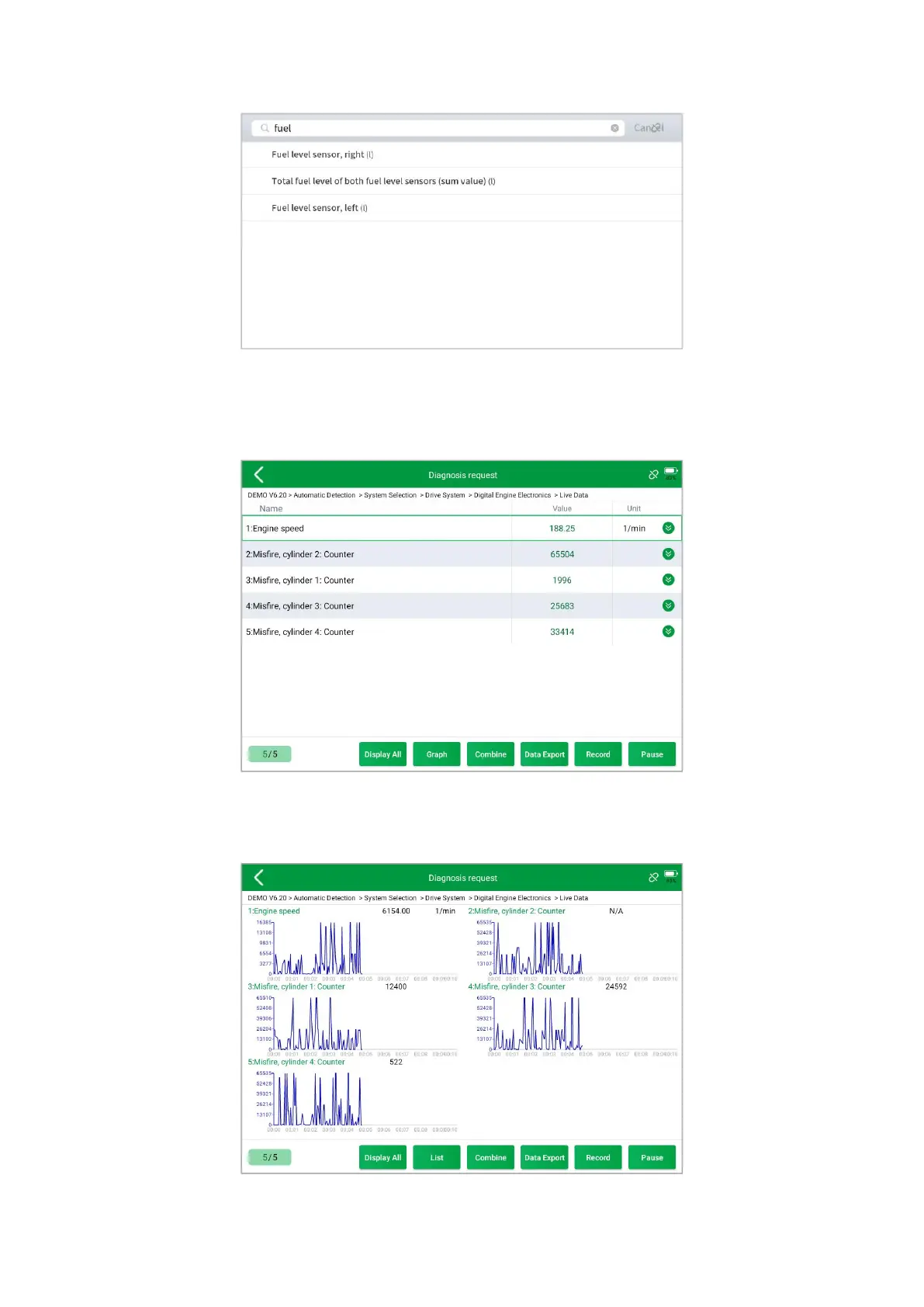 The scan tool includes support to select and show multiple PIDs. Click Display All to display all PIDs. This enables you to