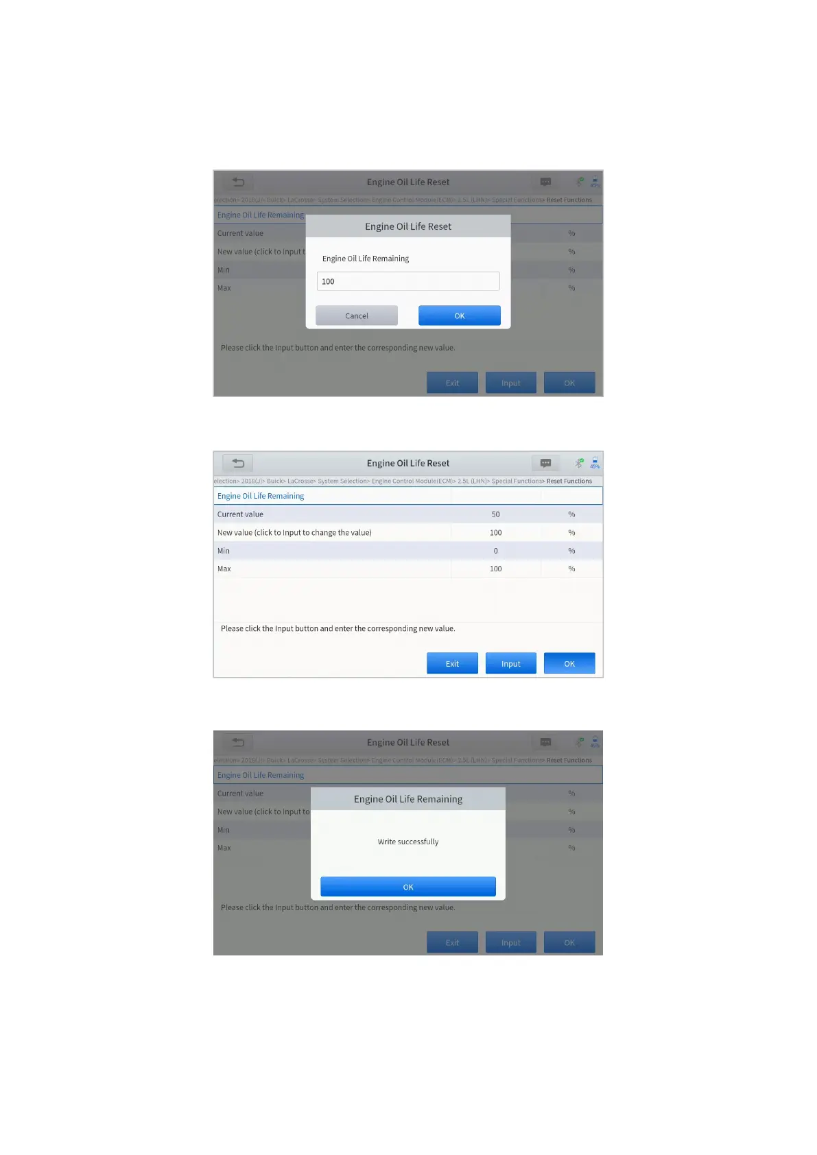 6. Message of ‘Write successfully’ displays when Oil Reset function has successfully performed.