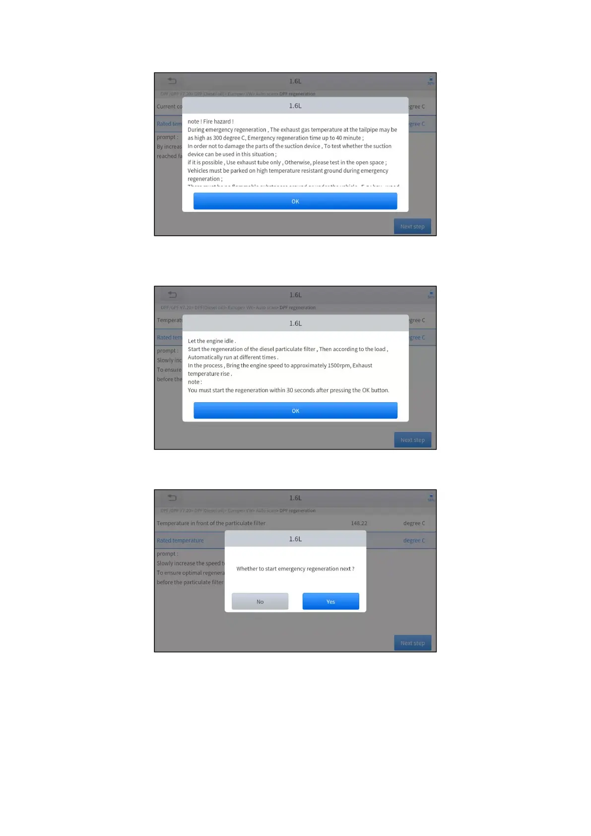 10. Wait for the value of carbon deposit to decrease until a message of ‘Emergency regeneration has been completed