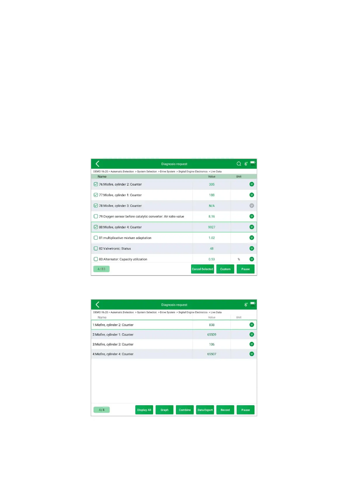 You can compare and view the selected and exported PID data on this page. The steps are as follows: