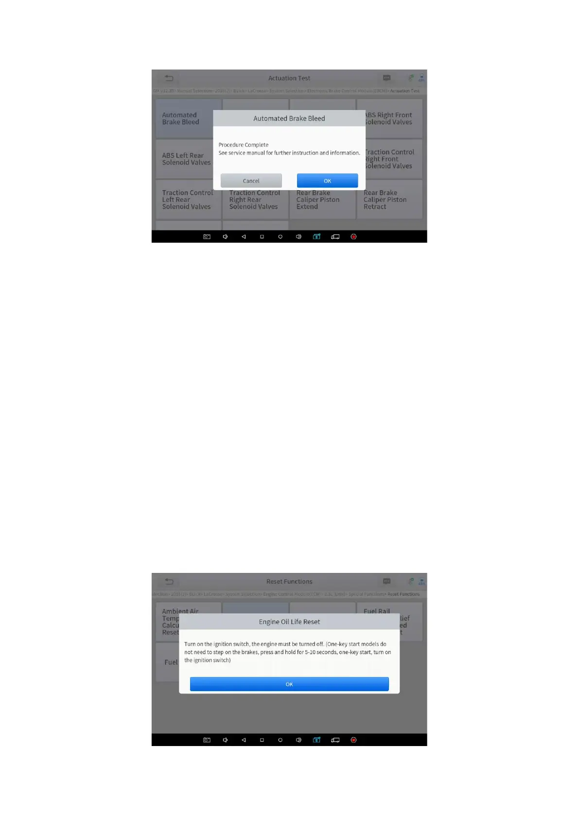 2. Follow the instructions displayed that are specific to the vehicle and press OK after completing the instructions shown.