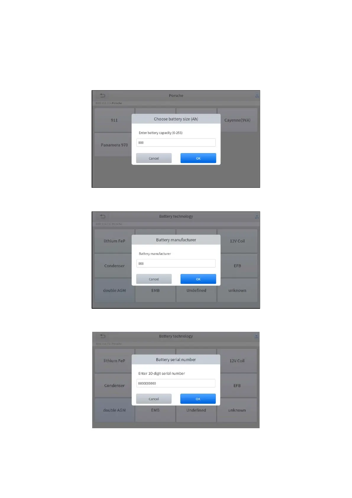 4. Enter battery capacity (within the given range) and press OK after the input.
