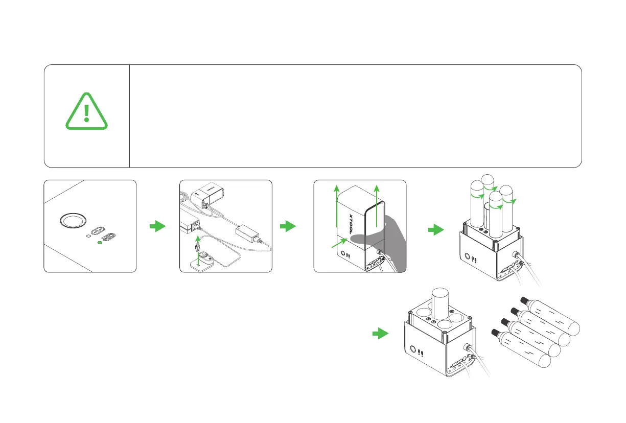 Note that the gas bottles can be used only once. Replace them after the gas is released.