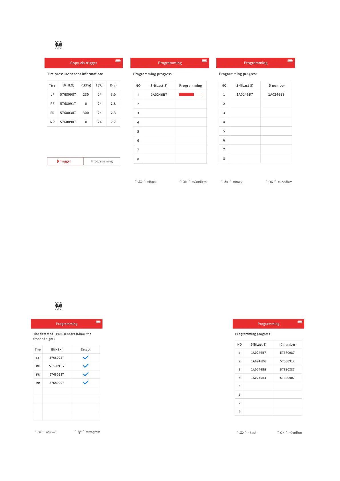 This allows you to get the ID from TPMS info and program the ID in XTOOL sensor.