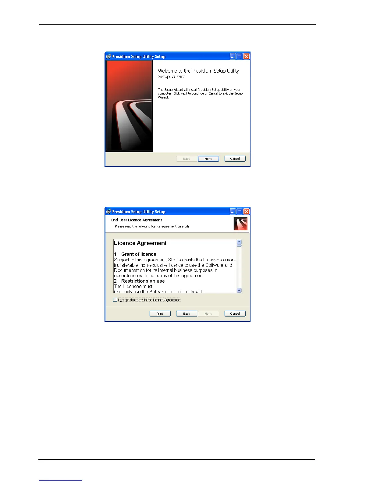 3. Select Next. The Licence Agreement is displayed.