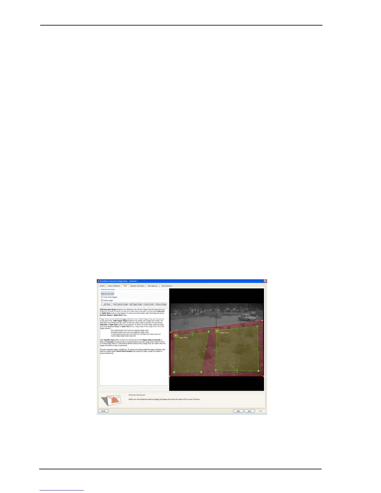 The detection areas and detection parameters are defined in the following sections.