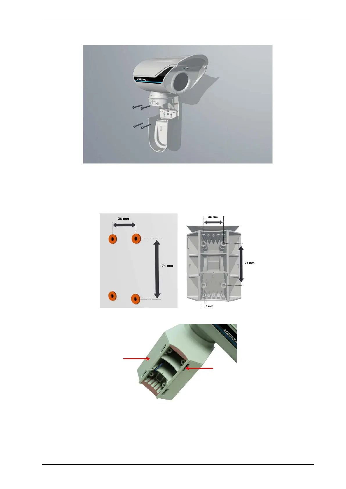 3. Screw in the detector arm as shown, using suitable screws. The upper screws should have a threaded