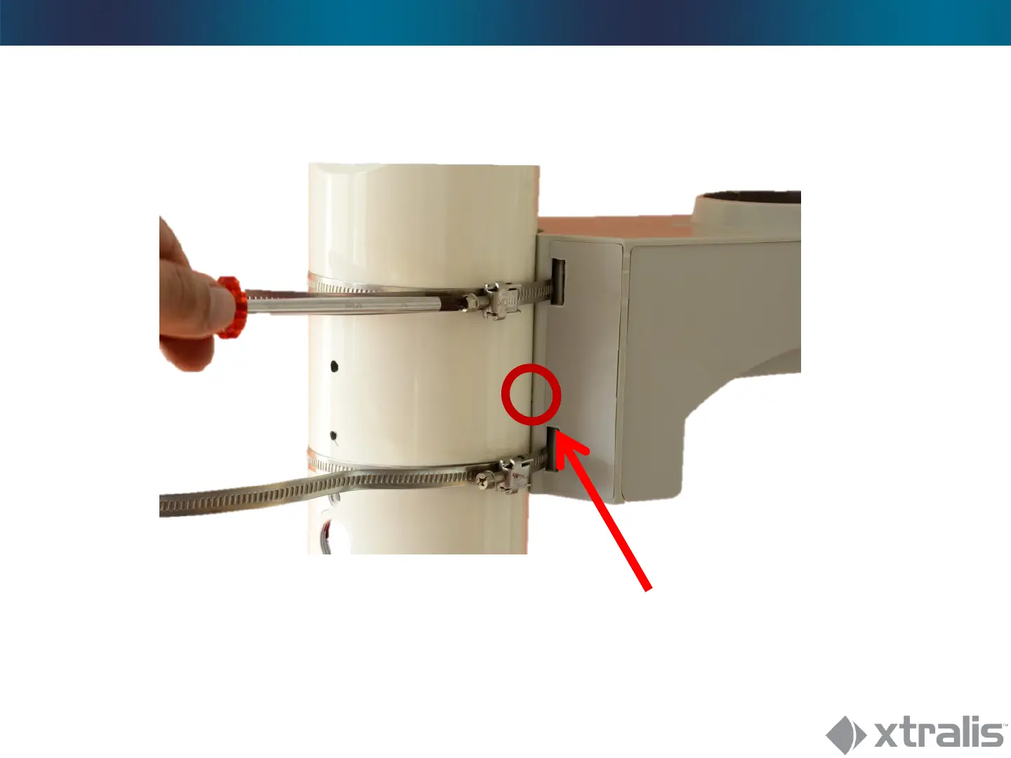 Feed straps through bracket, tighten around pole
