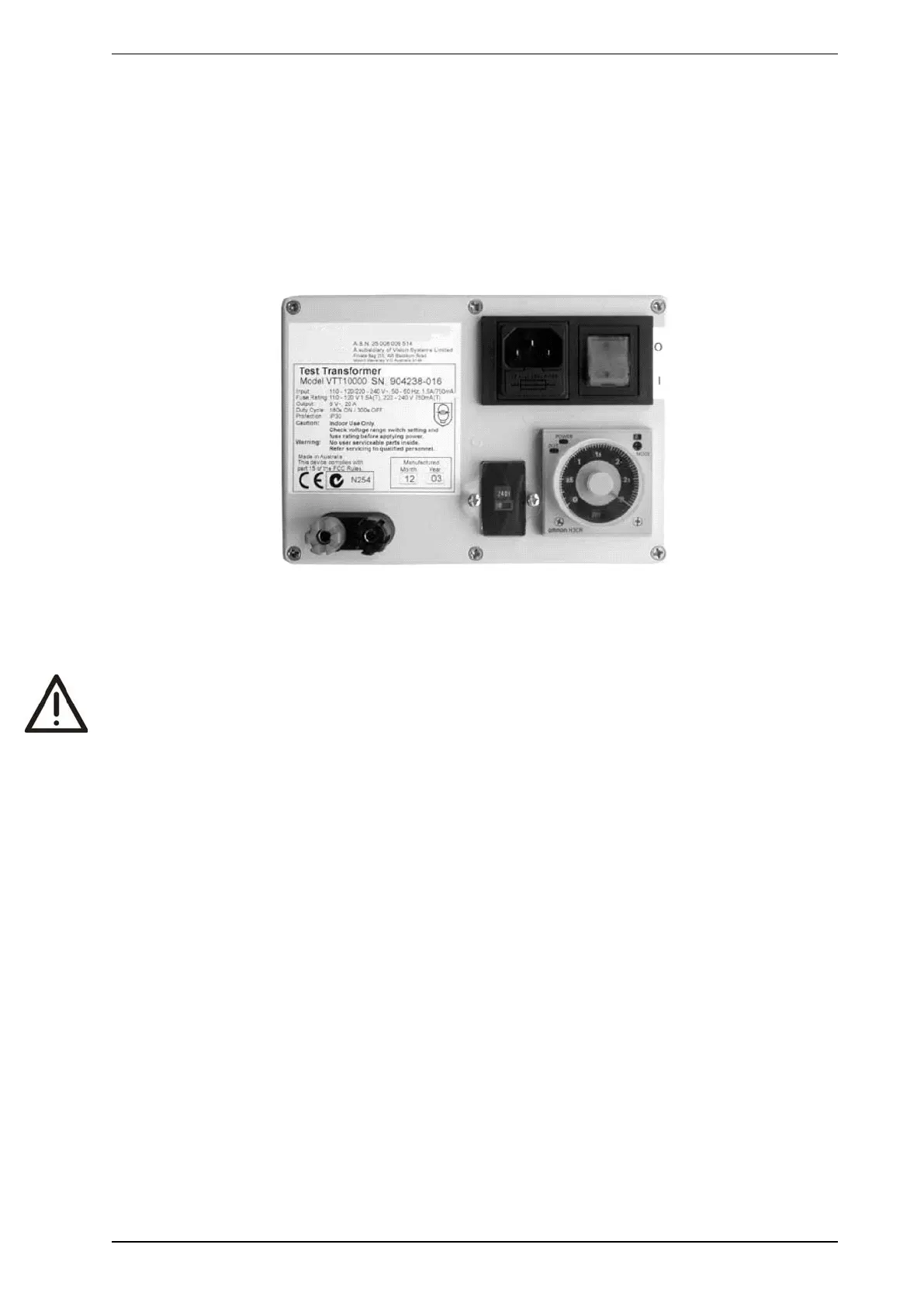 5. Connect power to the VTT-10000 and turn the power on for 60 seconds.