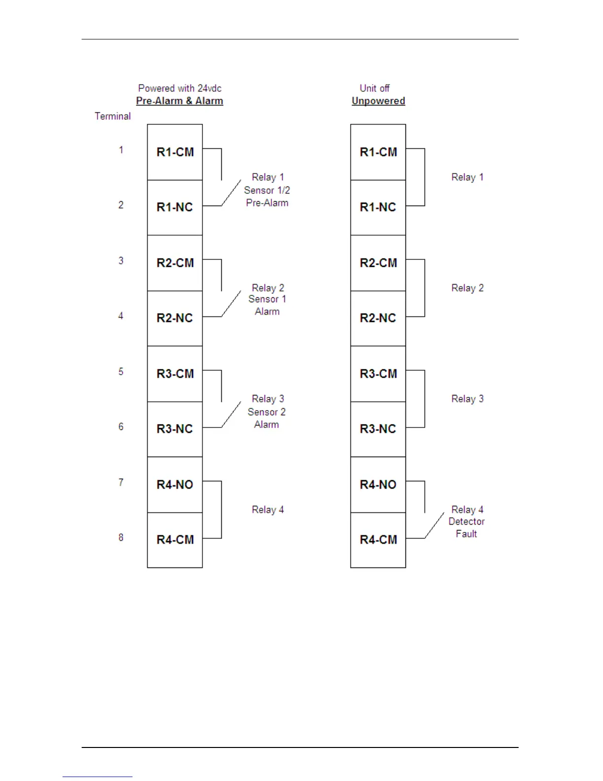 The terminals of Relays 1 to 3 are physically connected to the Normally Closed