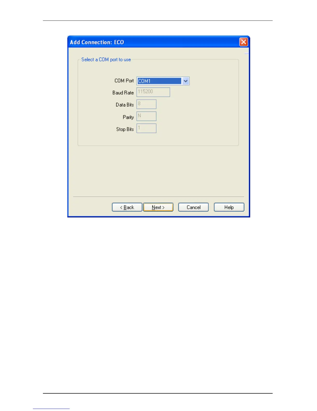 Select the serial communications port you wish to use from the ‘COM Port’ drop