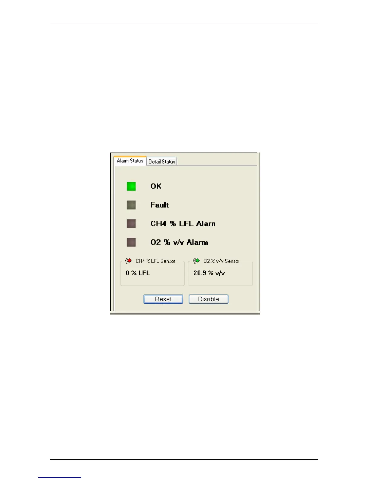 To reset all Alarms and Faults for the selected detector click the ‘Reset’ button.