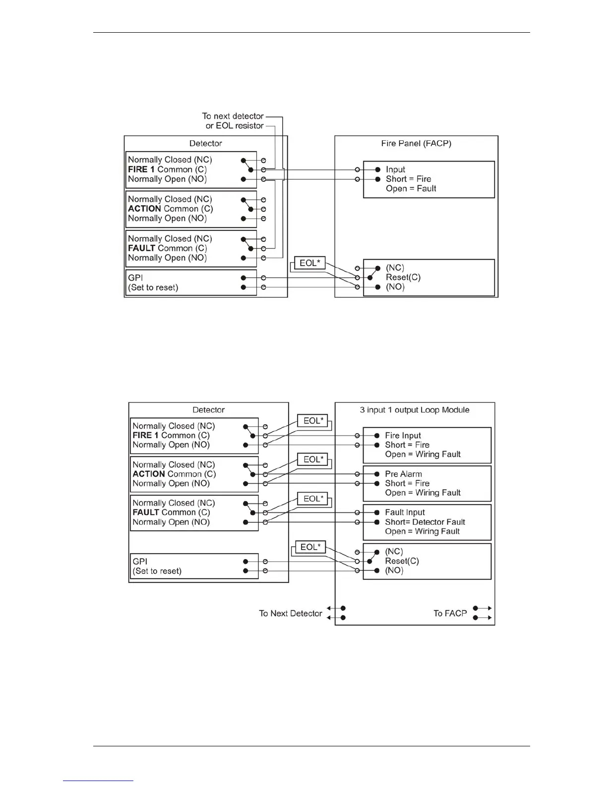 Figure 7-6: Typical wiring to a fire panel with EOL