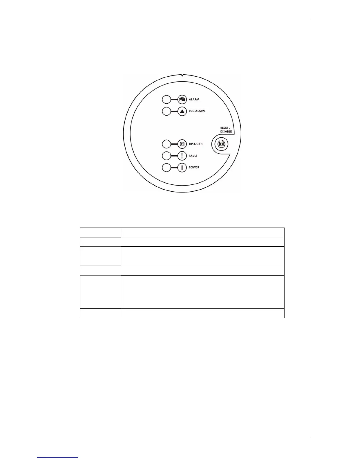 l Status LEDs: Alarm, Pre-Alarm, Disabled, Fault and Power.