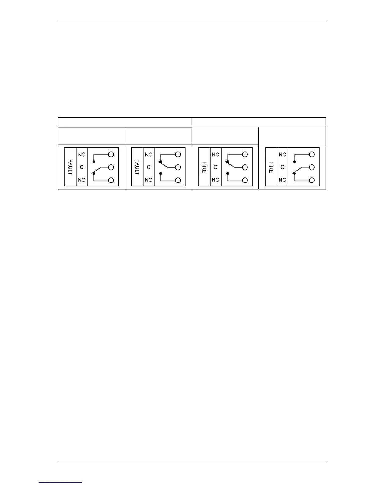 Fire is detected. The operation of the relays are summarized in the following table.