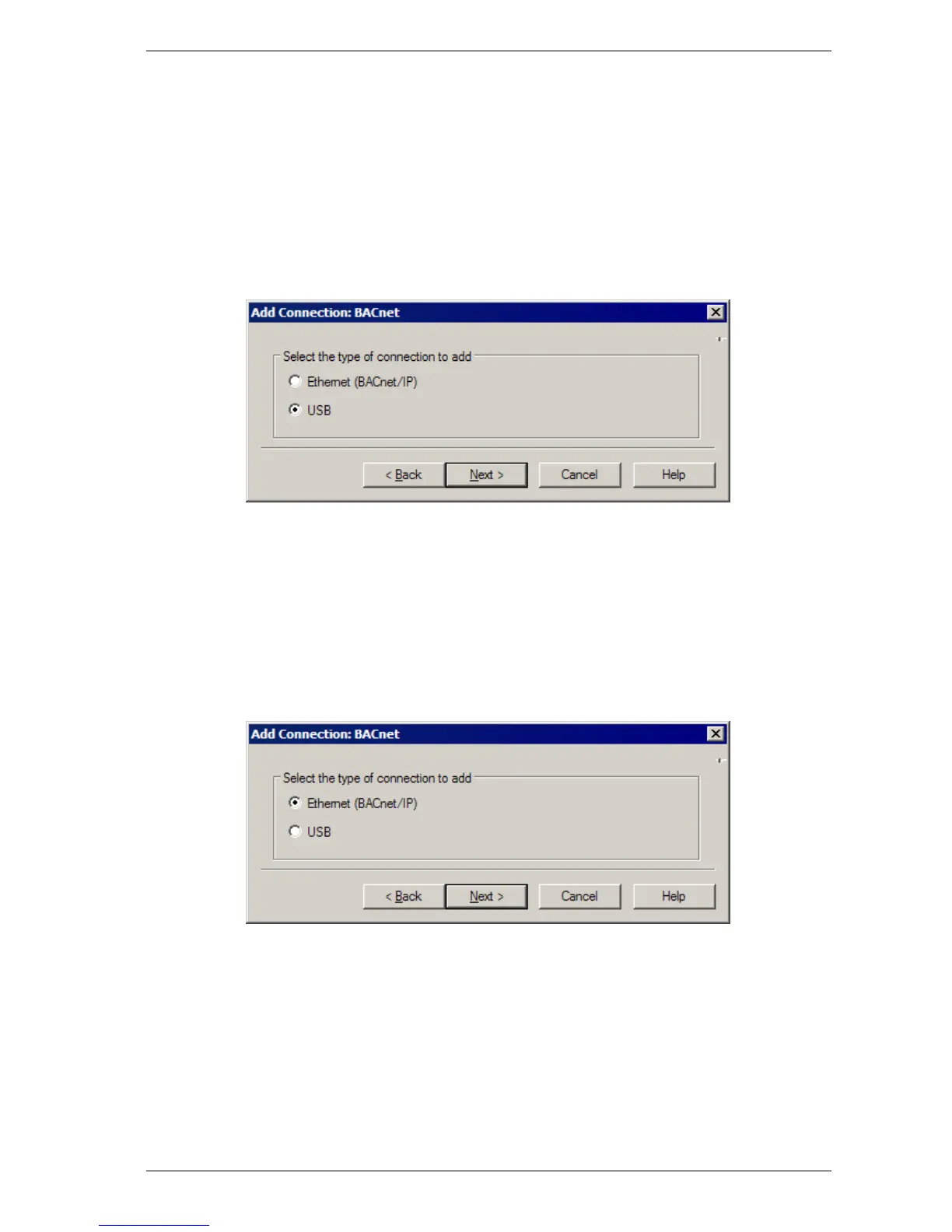 3. Select Ethernet (BACnet/IP), then select Next (Figure 5-4).