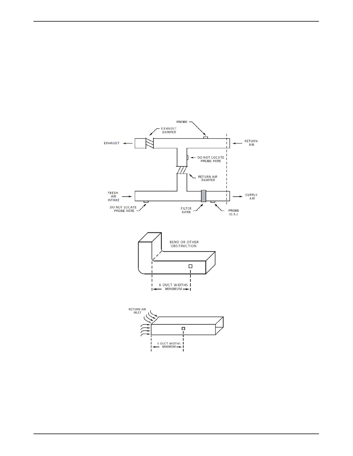 1. While not mandatory, it is recommended that when possible locate probes a minimum of six duct widths