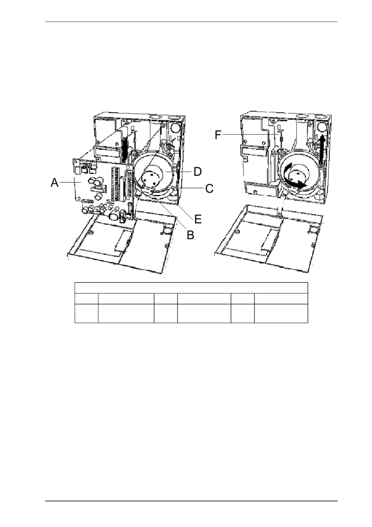 5. Undo the (captive) screws securing aspirator (D).