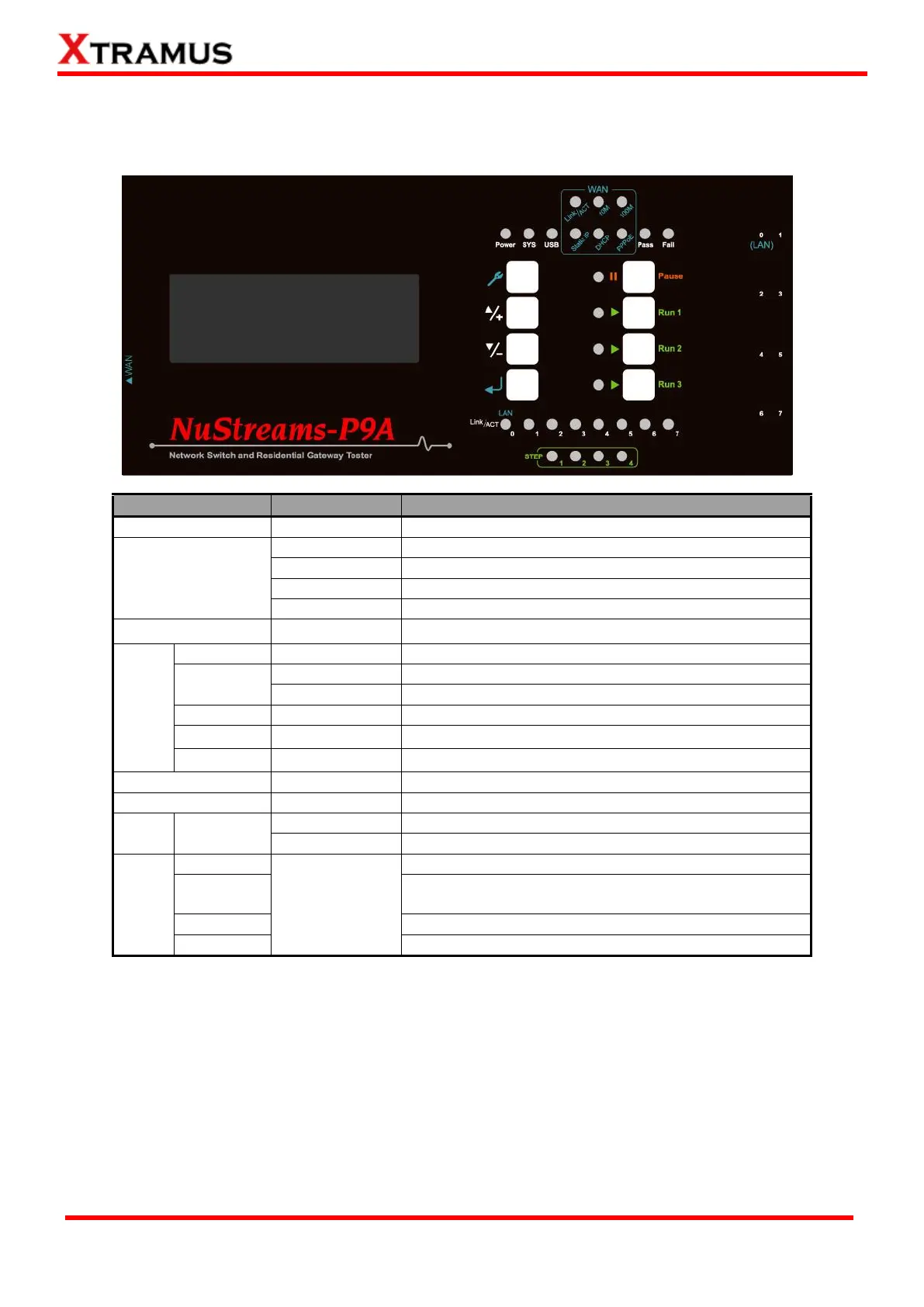 The table down below contains NuStreams-P9A’s front panel LED status and their meanings.
