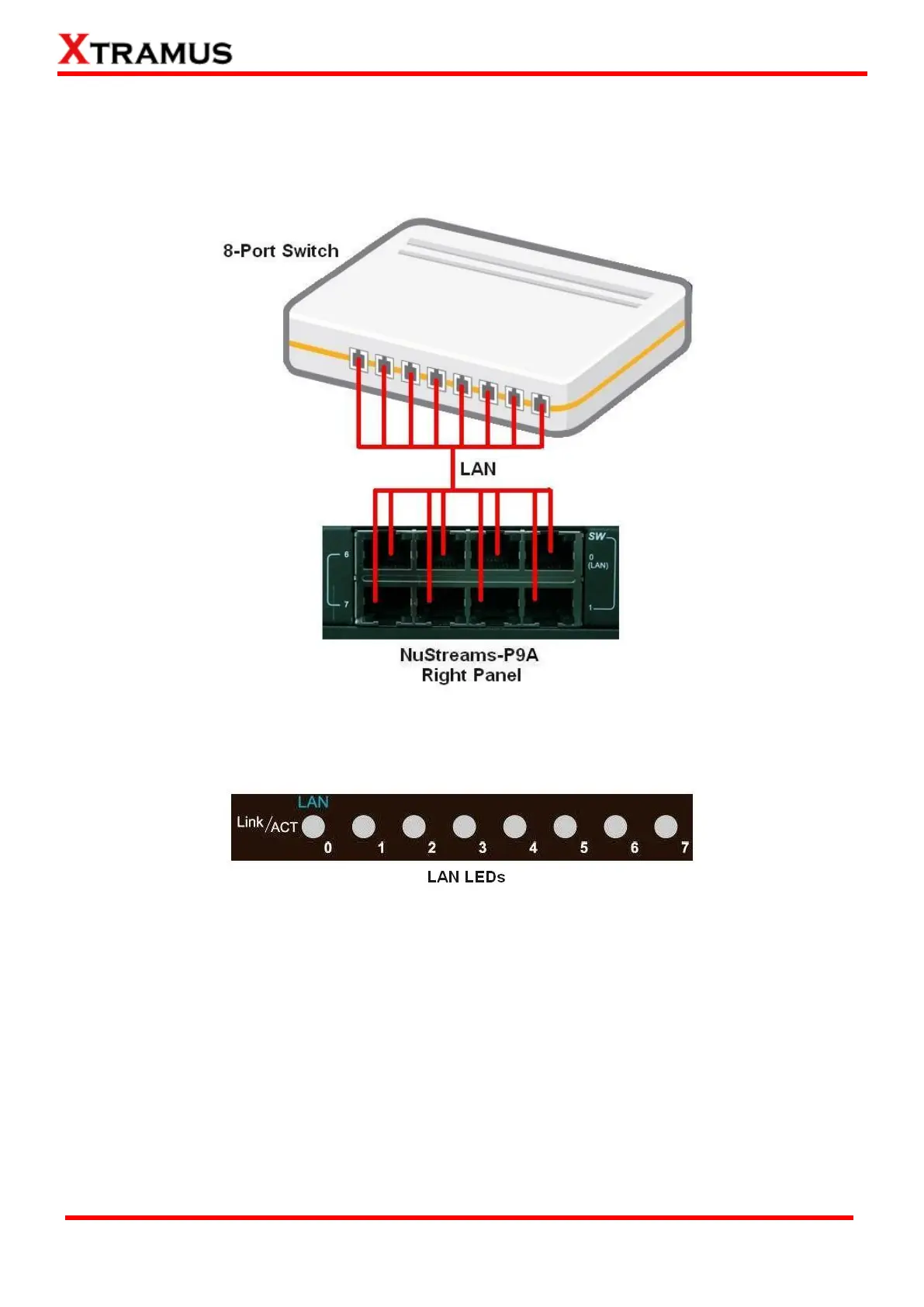 While performing tests on Switch, DUT LAN ports must be connected to NuStreams-P9A with CAT-5
