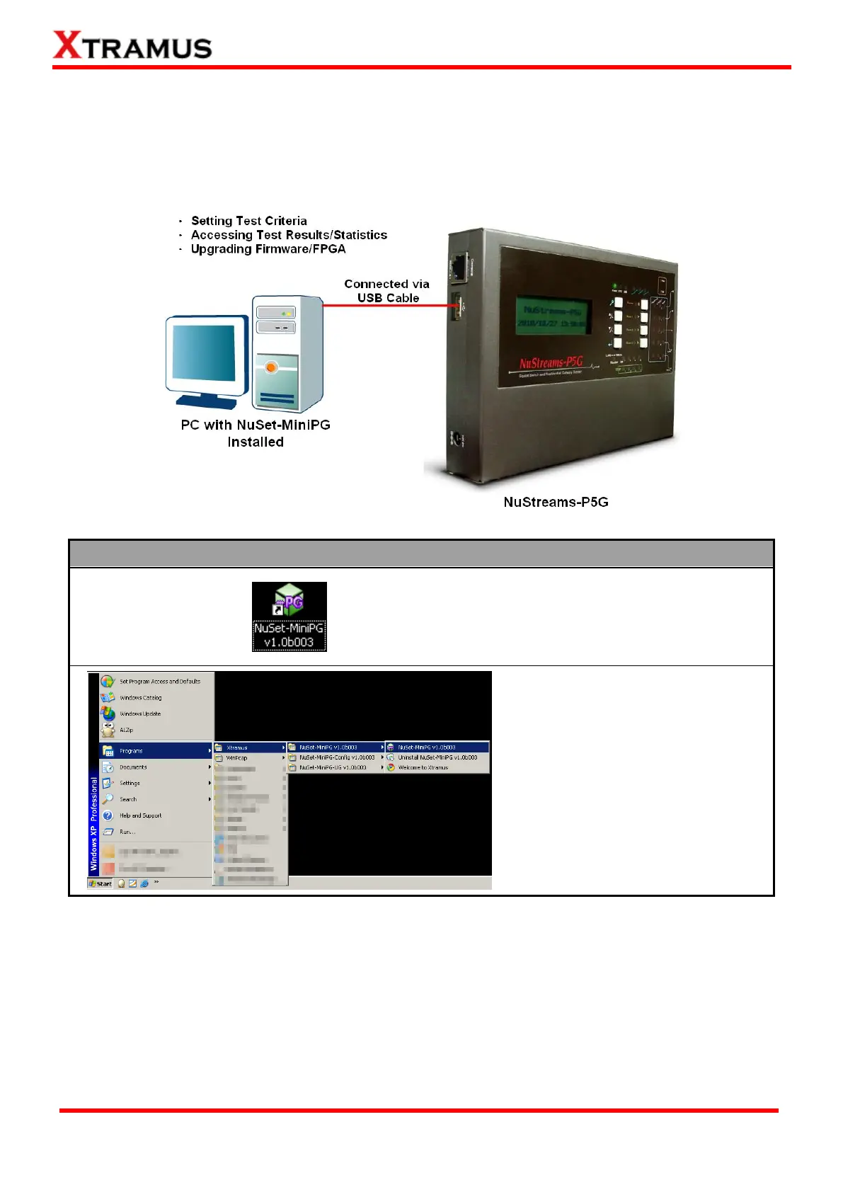 Before starting NuSet-MiniPG, please be sure that your NuStreamsP5G or NuStreams-P9A is properly