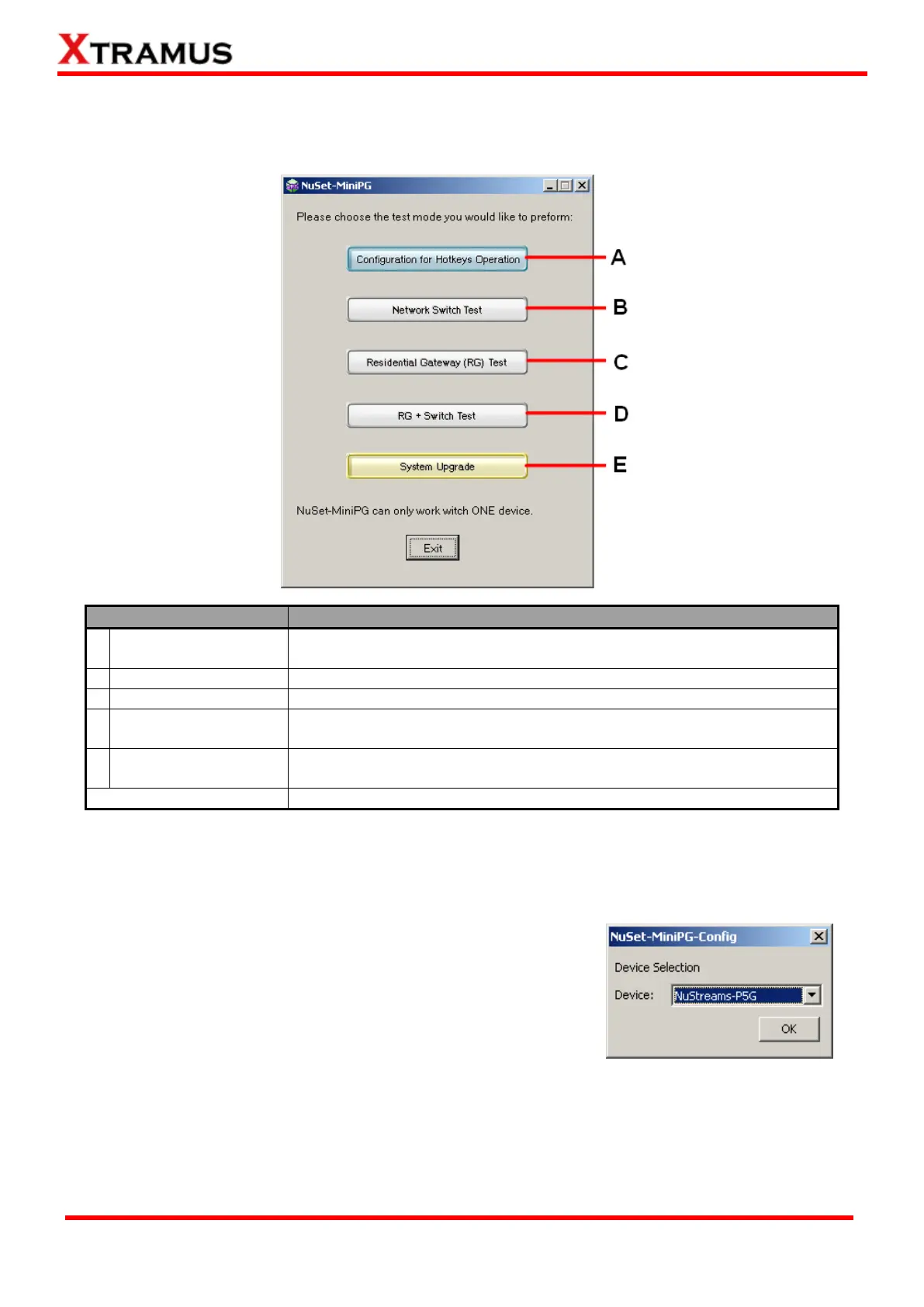 You have to install different utilities in order to access different test modes listed on the NuSet-MiniPG