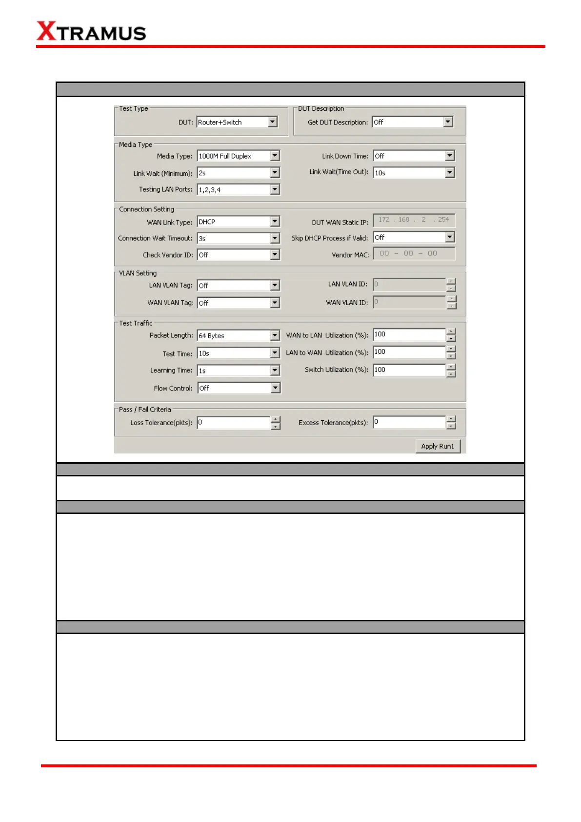 DUT: Choose “Router + Switch” from this scroll-down menu to start configuring tests for both routers and switches.