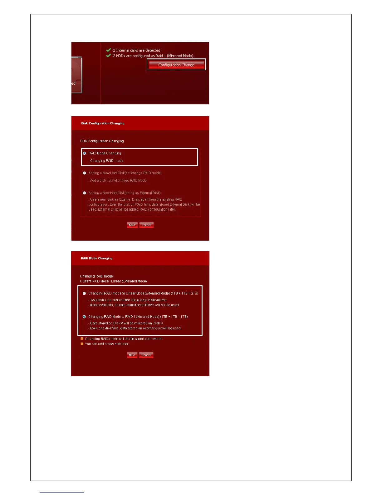 2. Choose RAID Mode changing and click