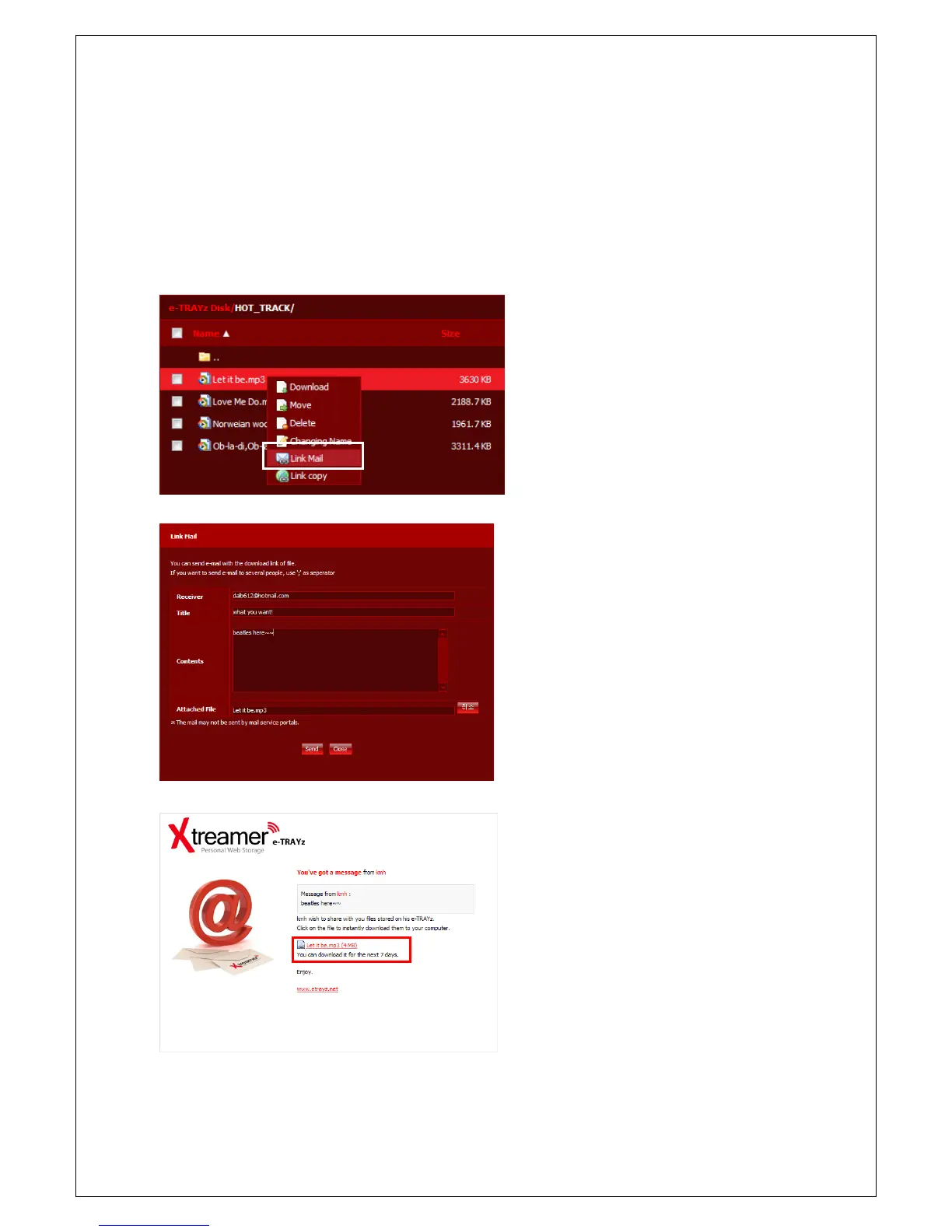 When transmitting a large-sized file to someone else, the Linkmail function is used to forward via mail.