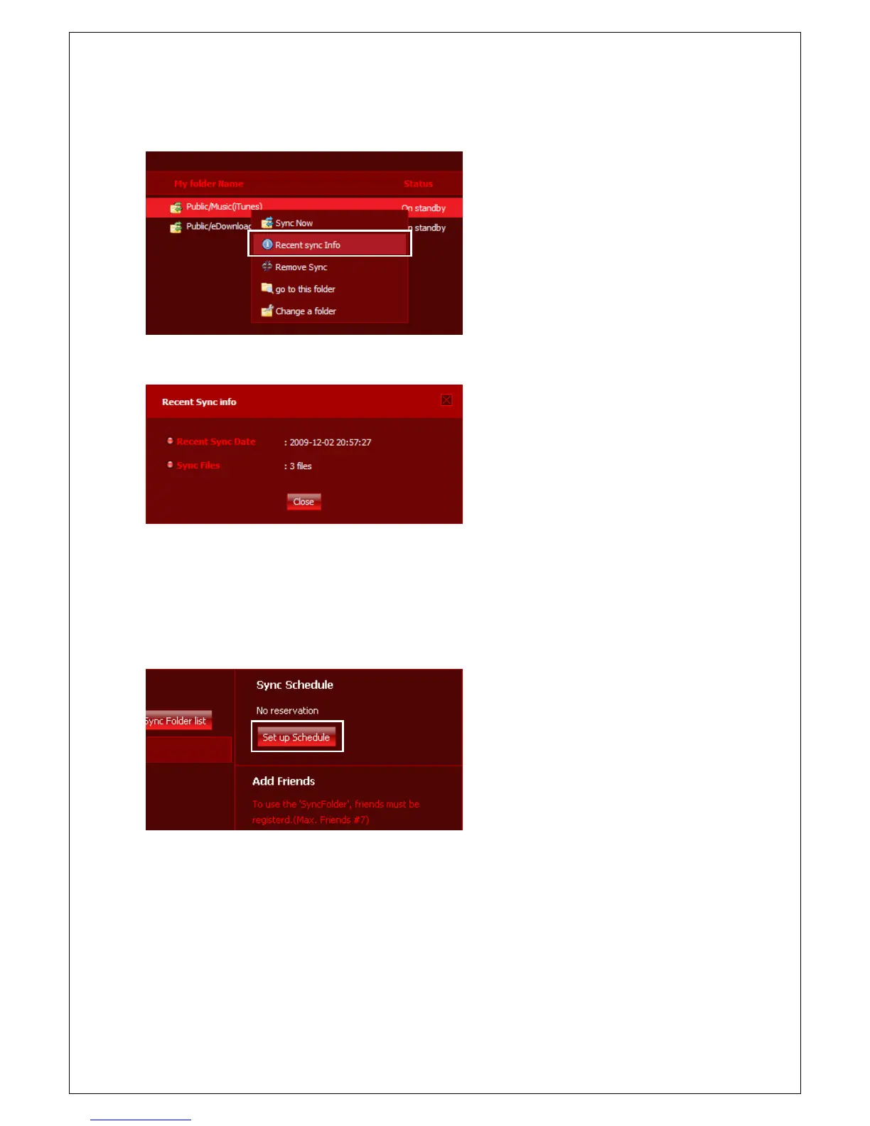 Xtreamer e-TRAYz - Recent Sync Info; Setup Sync Schedule