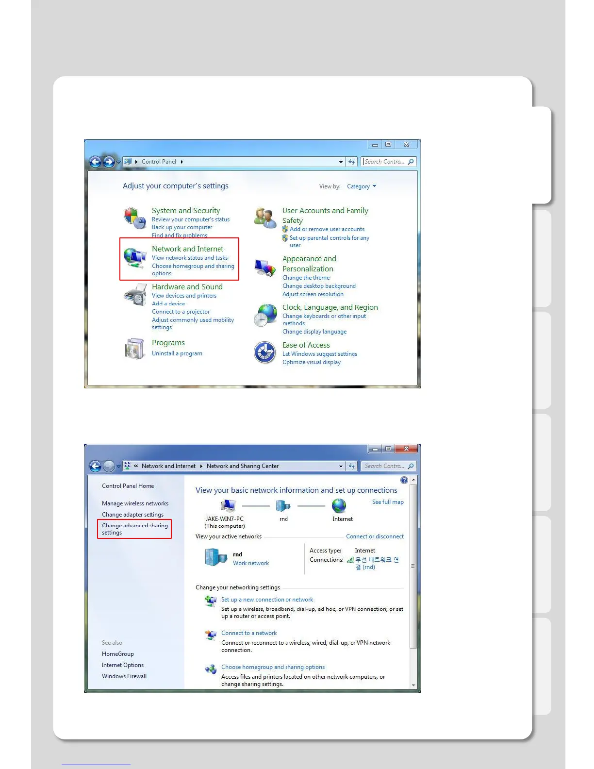 2. Click [Change advanced sharing settings] on the right side of the screen after appearing Network and