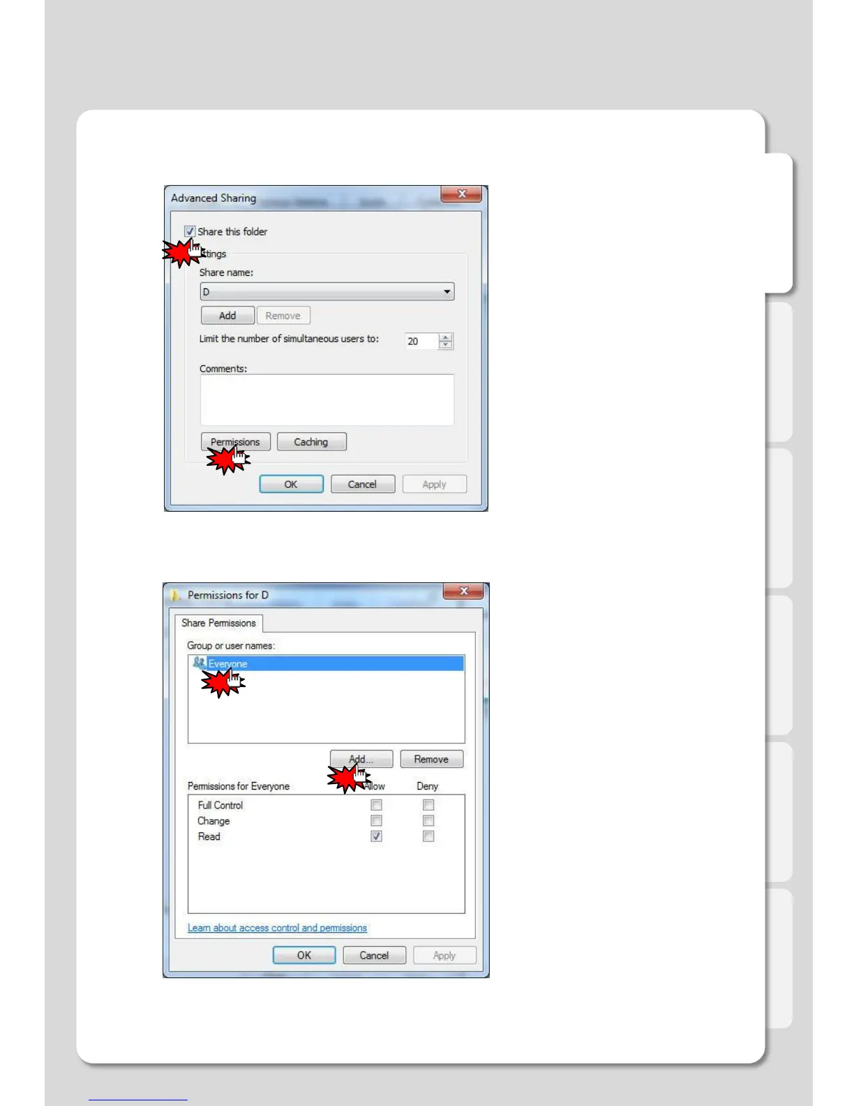 7. Click [Add] if there is no “Guestaccount due to “Everyone” and “Guest” account is needed in order to