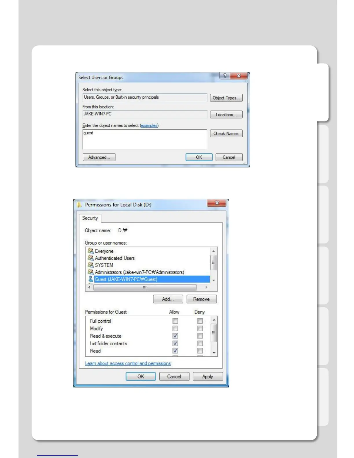 13. Complete setup as confirming “Guestaccount added by selecting [OK] [Apply] [OK]