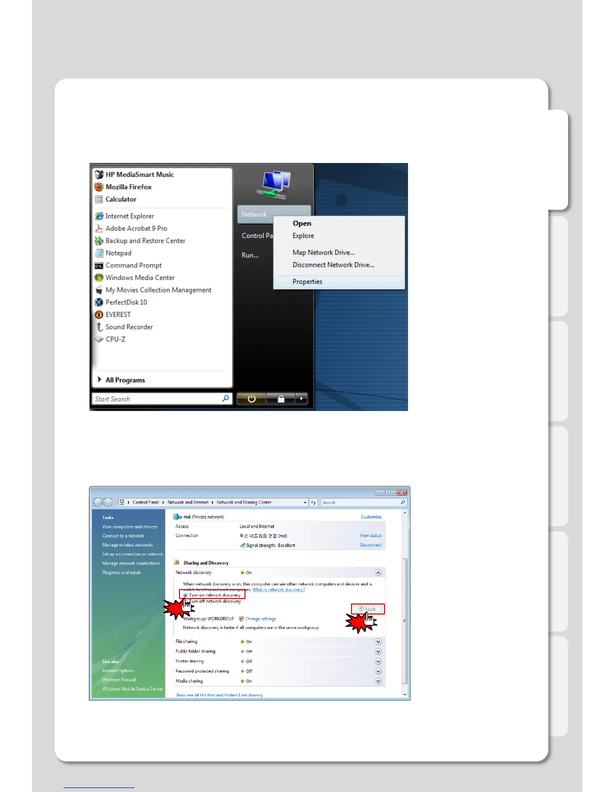 2. Click [Network discovery] - [Turn on network discovery] and then, click [Apply].
