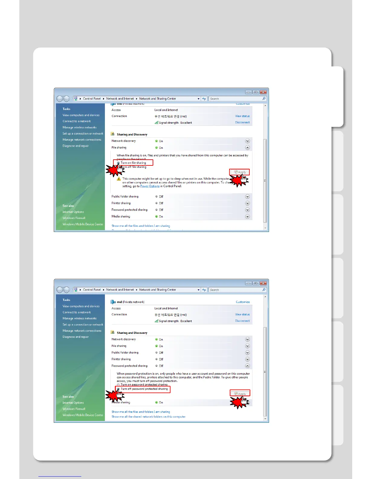 Click [Password protected sharing] [Turn off password protected sharing], and then click