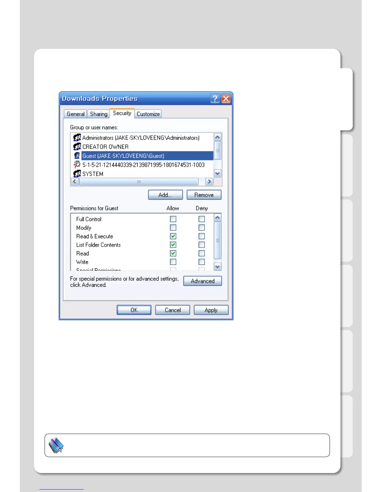 9. As you check “Guest” account added in Security tap, setting will be completed by [Apply] [OK].