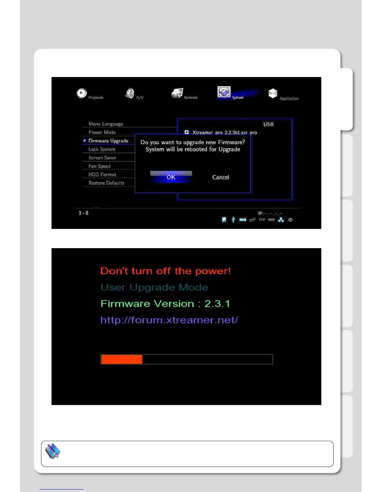 2. After window message appears, Xtreamer will be rebooted, and then Firmware update will start.