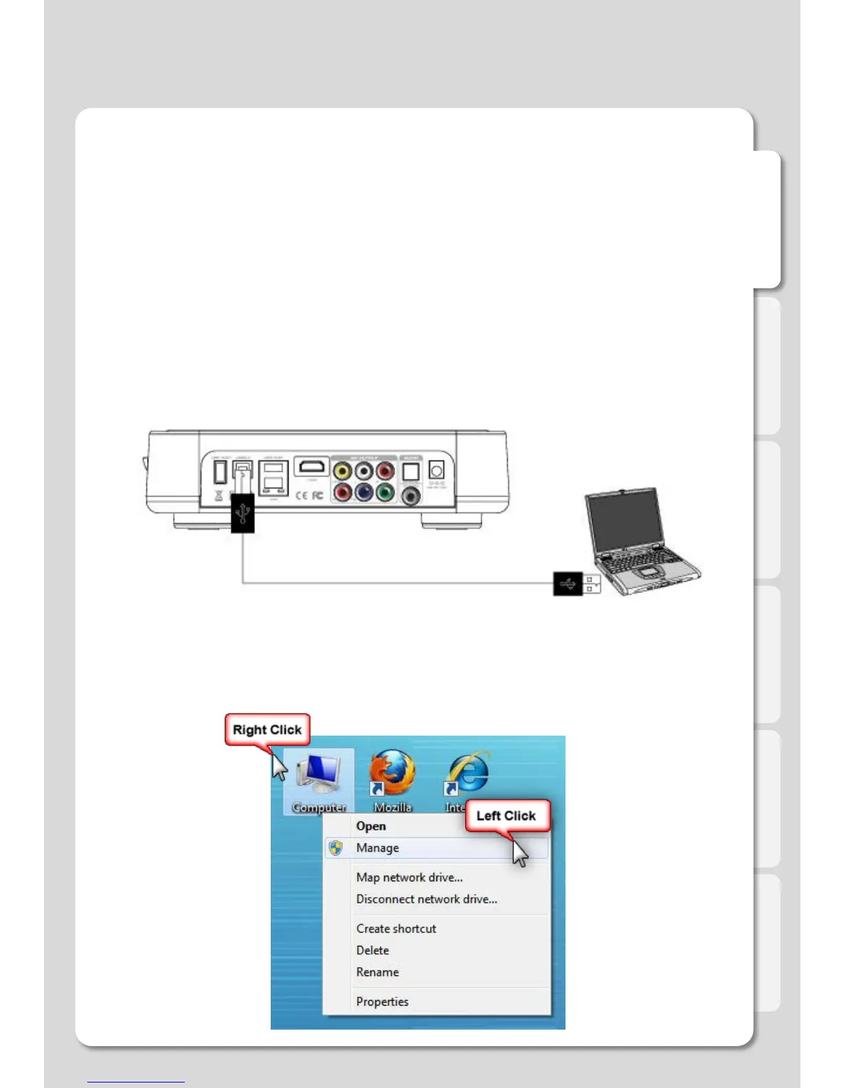 1. Connect USB cable to USB Slave port at the back of player and to a PC.